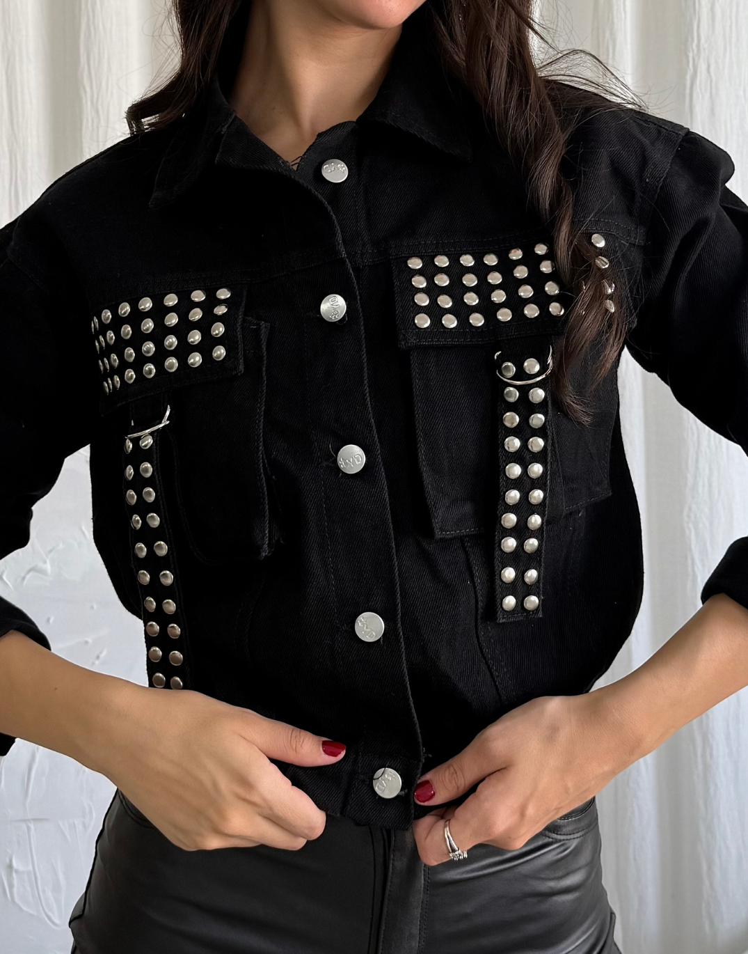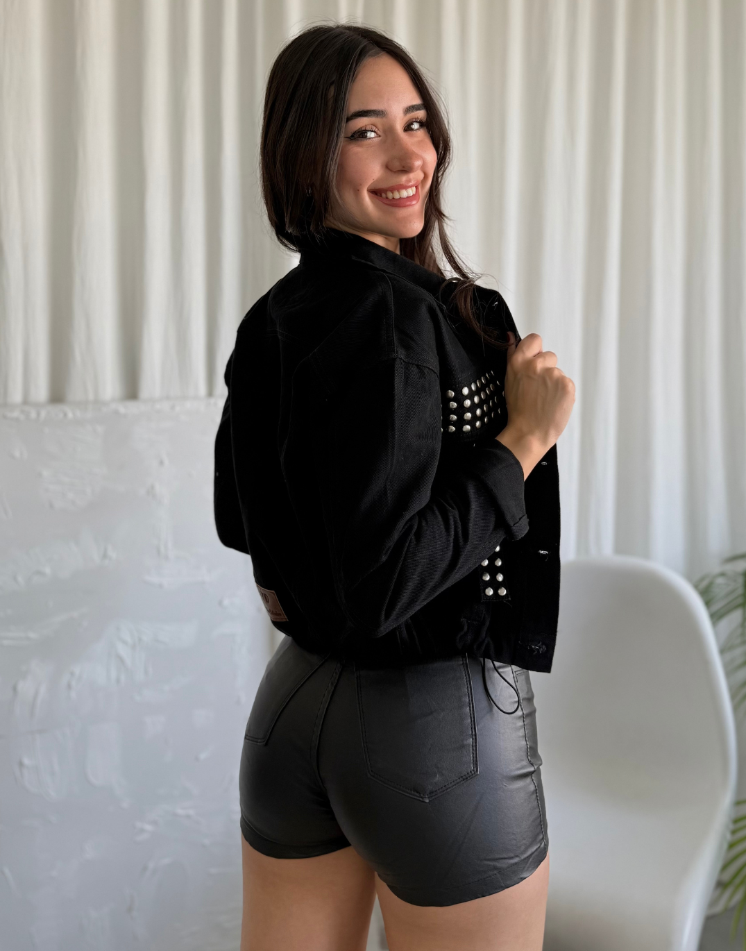 Detalles de tachas en los bolsillos cargo con elástico en la cintura