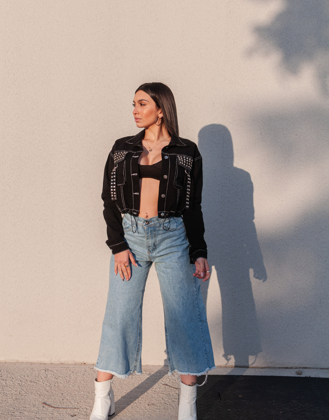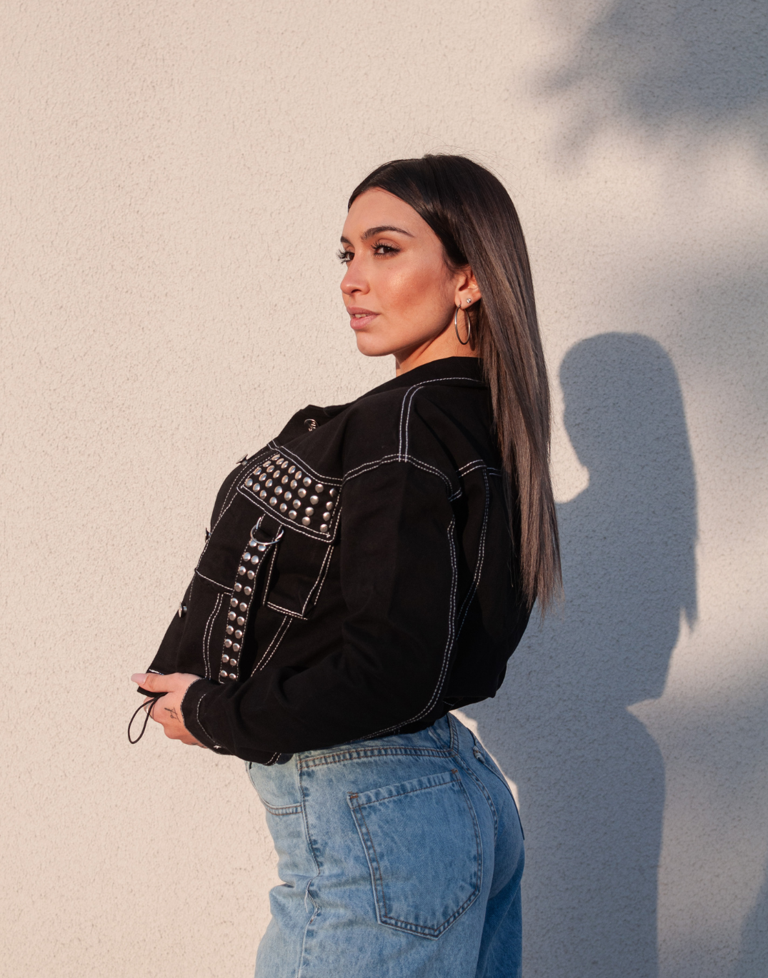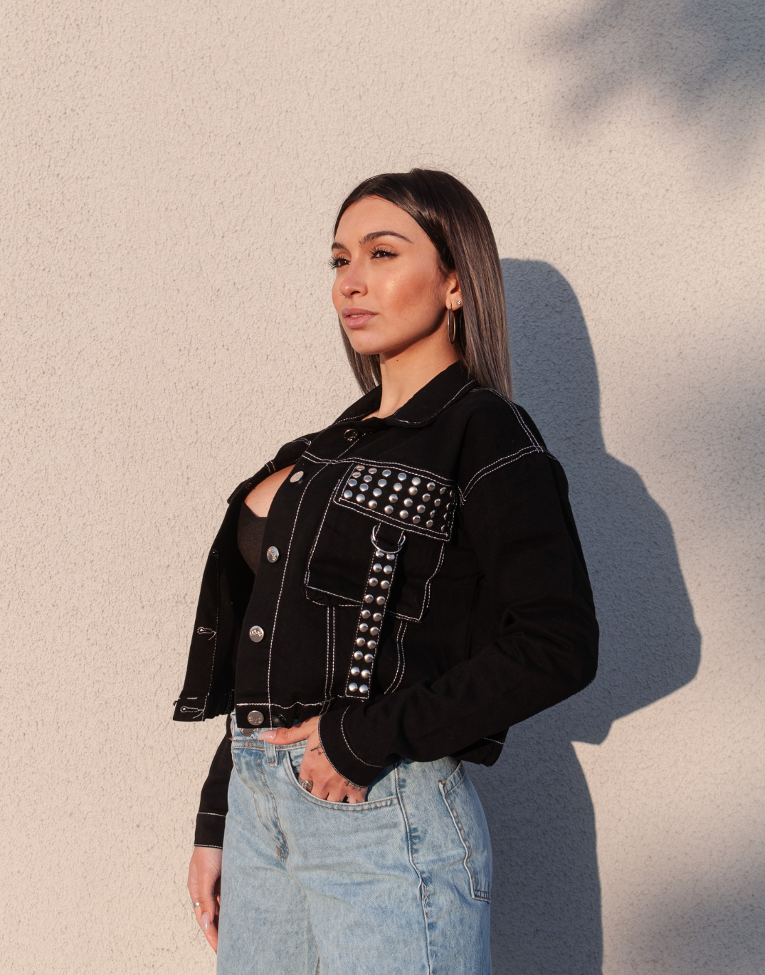 Detalles de tachas en los bolsillos cargo con elástico en la cintura